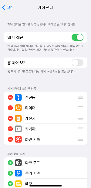 이제 제어센터에 화면 기록 항목이 포함이 된 것을 확인하실 수가 있습니다.