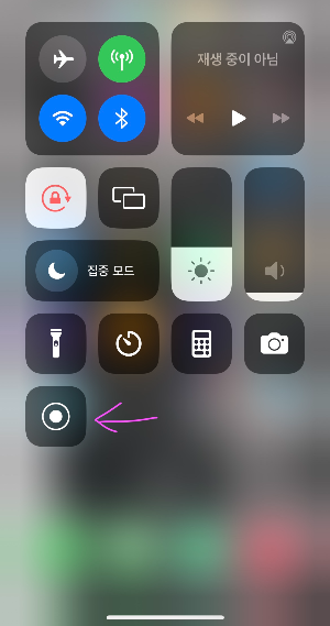 이제 폰의 맨 위쪽 제어센터를 내려보면 이렇게 화면을 기록할 수 있는 버튼이 생겼습니다. 한번 눌러볼까요?